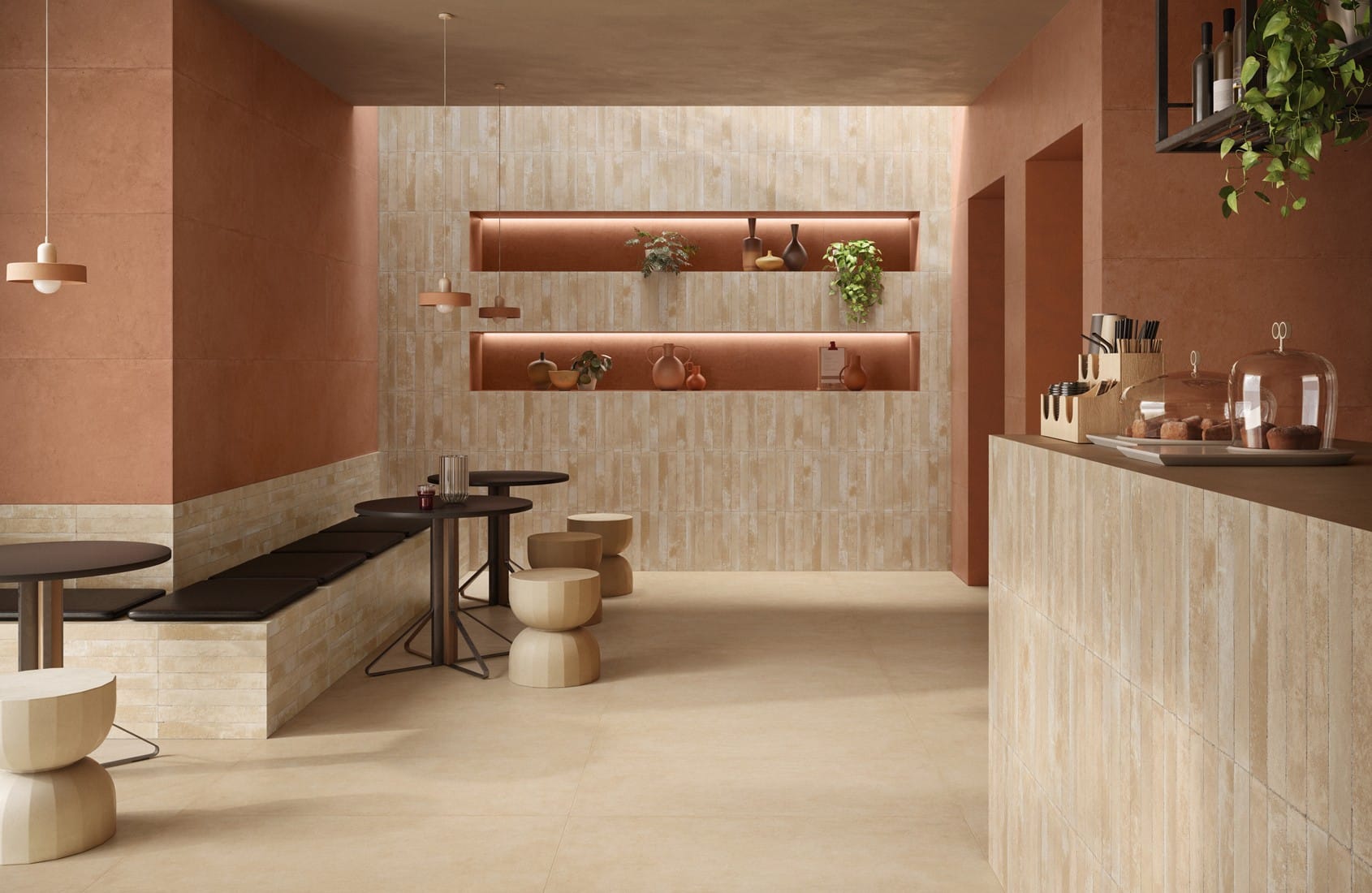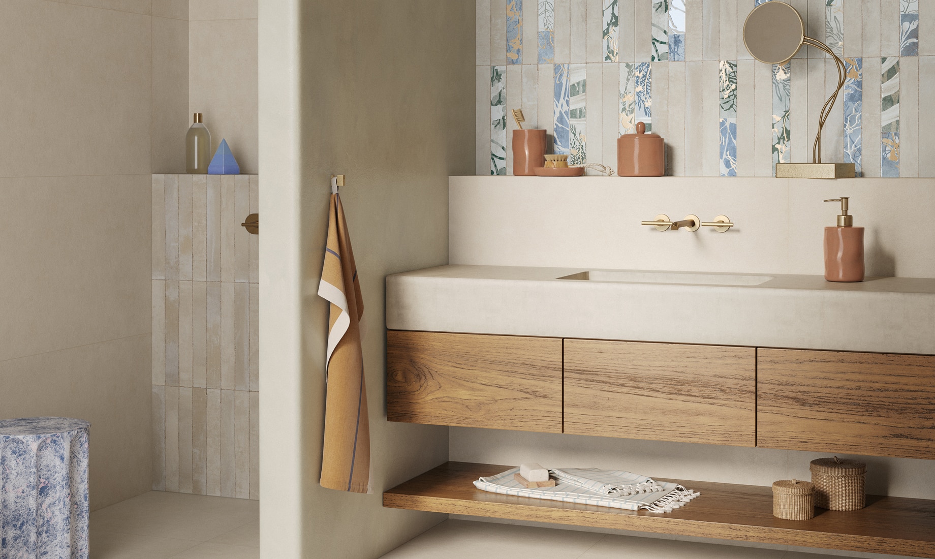 La collection Cythere s’inspire de l’île grecque de Naxos, où, selon la légende, Aphrodite serait arrivée sur un coquillage, symbole de beauté et d’harmonie. Les couleurs et les surfaces de la collection rappellent les paysages de l’île : galets d’un gris chaud, sable fin, roches presque blanches et argile rouge riche en fer, semblable aux pigments des peintres vénitiens.